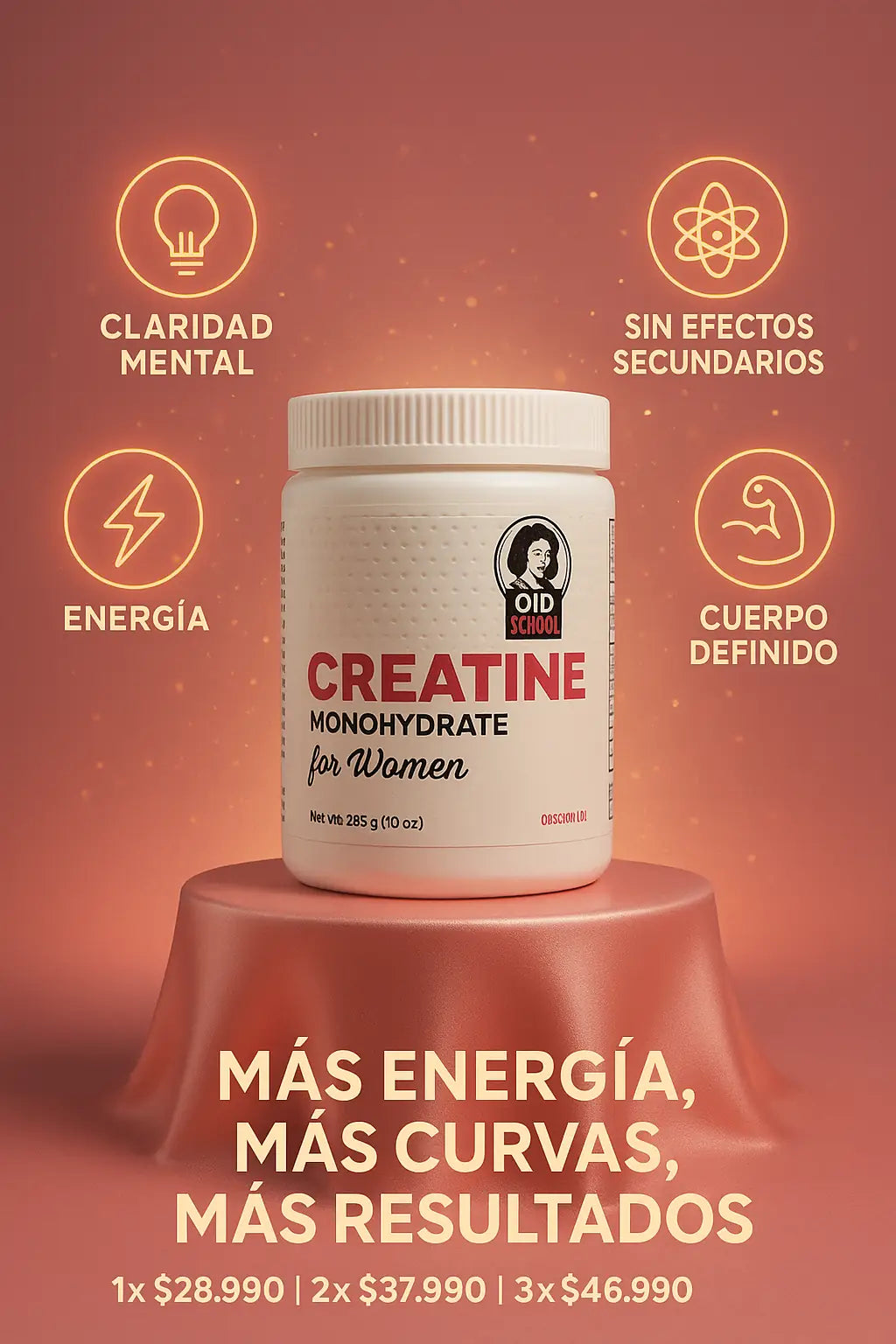 La Creatina para Mujeres actúa aumentando la energía disponible en tus músculos (ATP), lo que te permite: